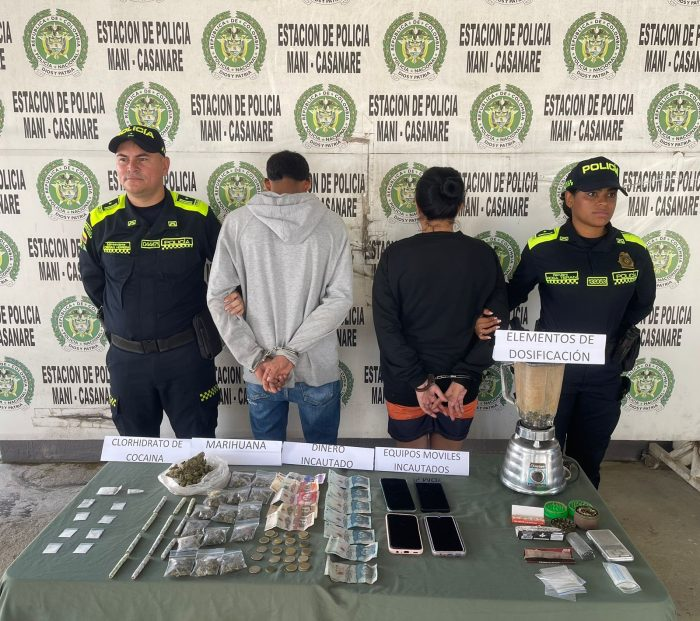La Policía en Maní, a través de la Seccional de Investigación Criminal (SIJÍN), logró la captura en flagrancia de dos ciudadanos señalados de participar en actividades de Tráfico, Fabricación o Porte de Estupefacientes.