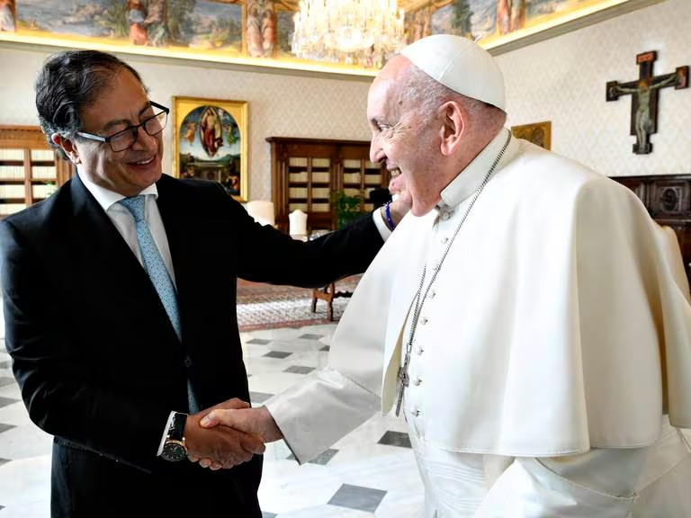 Petro elogió la coincidencia de visiones con el papa Francisco, no solo desde el punto de vista religioso, sino también político. Citó las encíclicas del pontífice, como «Laudato si» sobre la protección de la naturaleza y «Fratelli Tutti», como fuentes de inspiración para abordar los desafíos actuales.