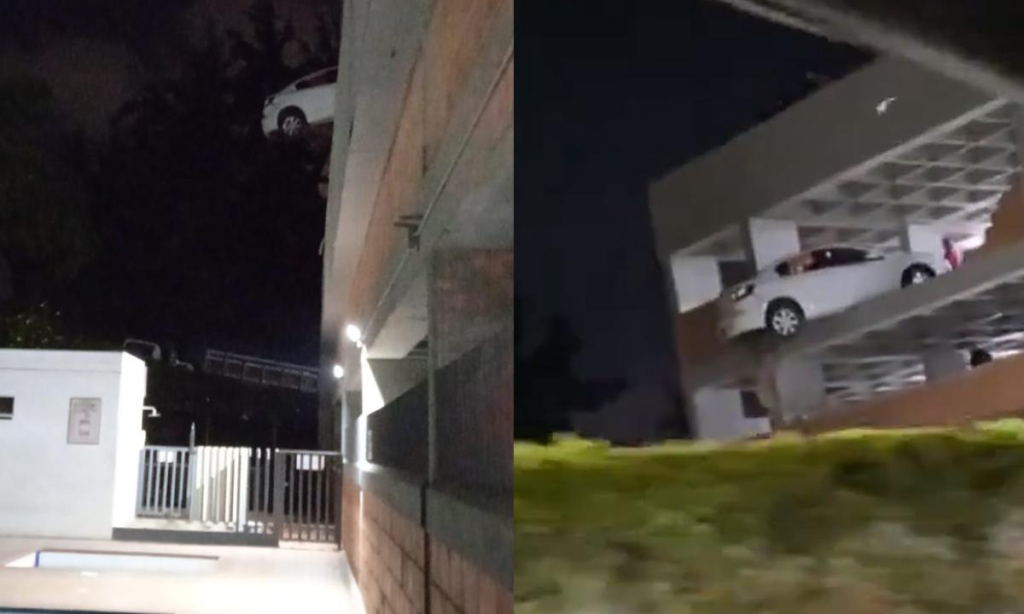 Vehículo a punto de caer desde tercer piso de parqueadero en Rionegro
